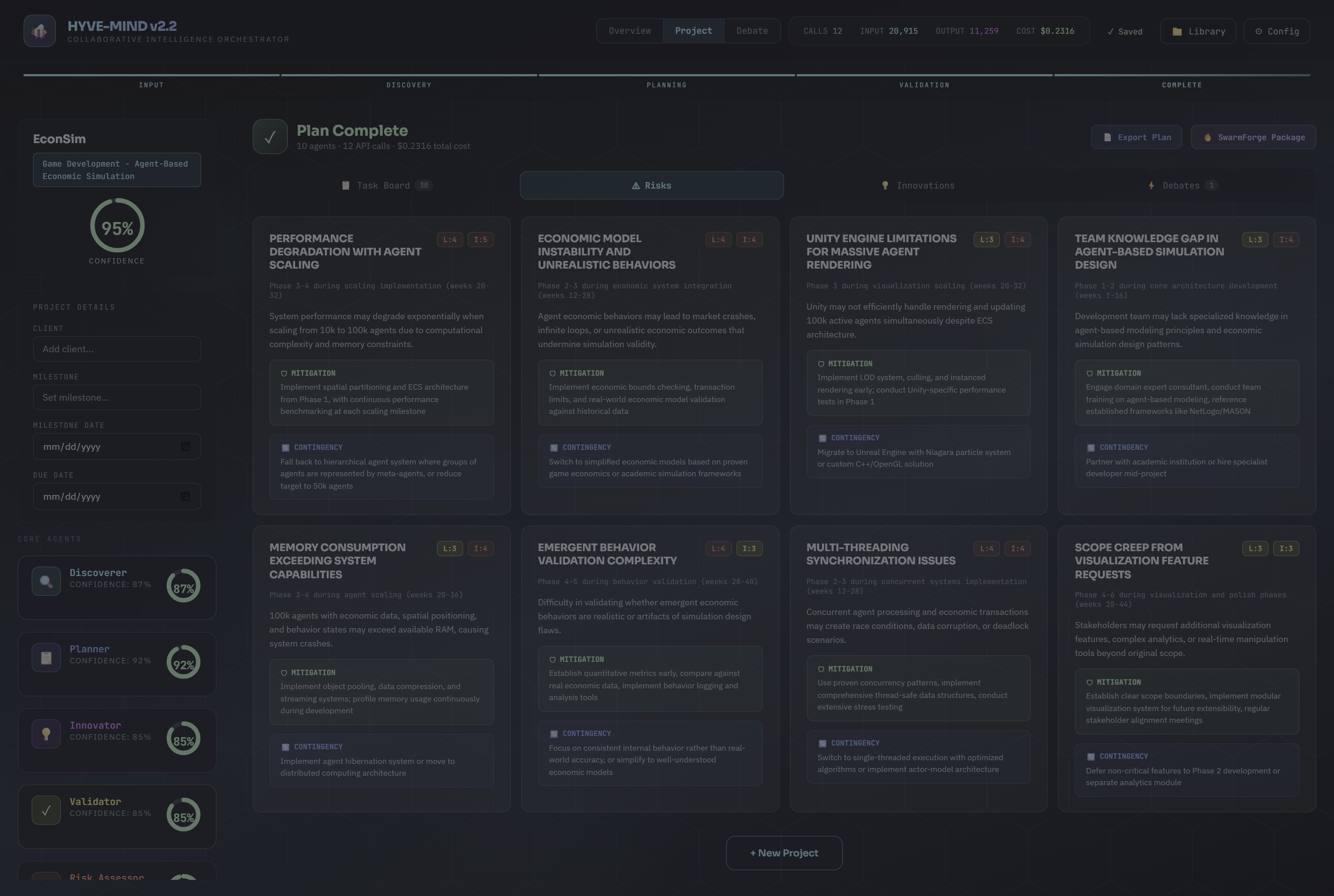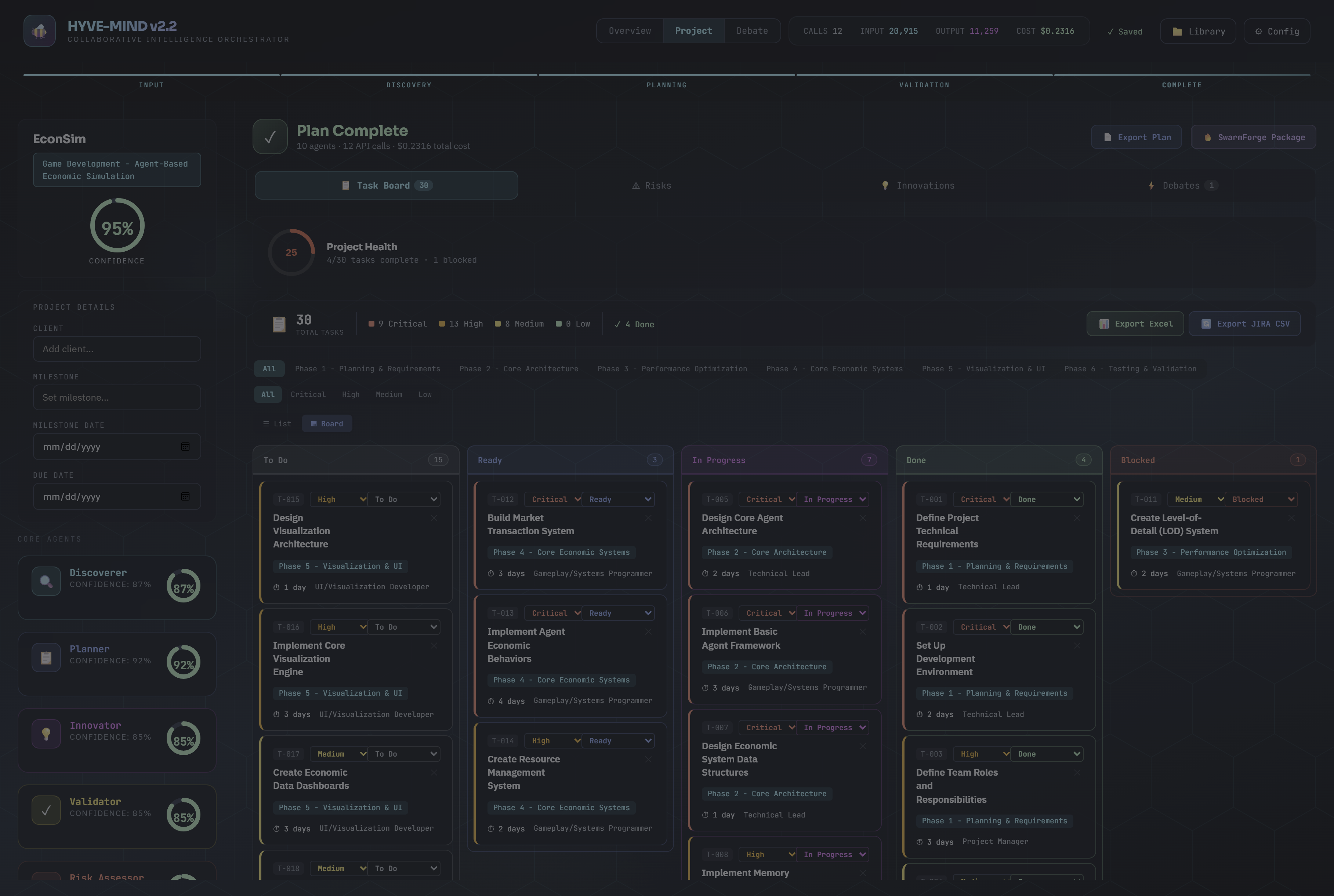 Multiple AI agents break down requirements, map dependencies, assess risks, and estimate timelines.